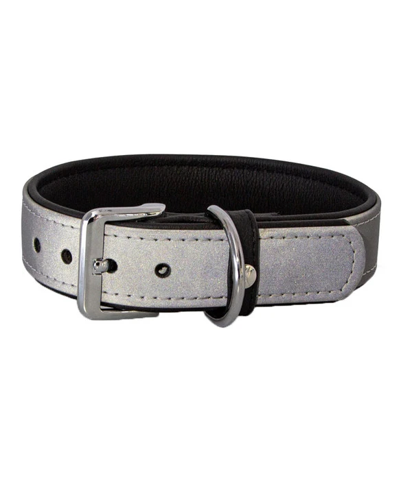 Damit Sie Ihren treuen Freund auch im Dunkeln gut sehen: Das Lederband Hundehalsband Style Oslo Silber