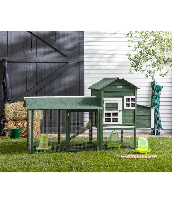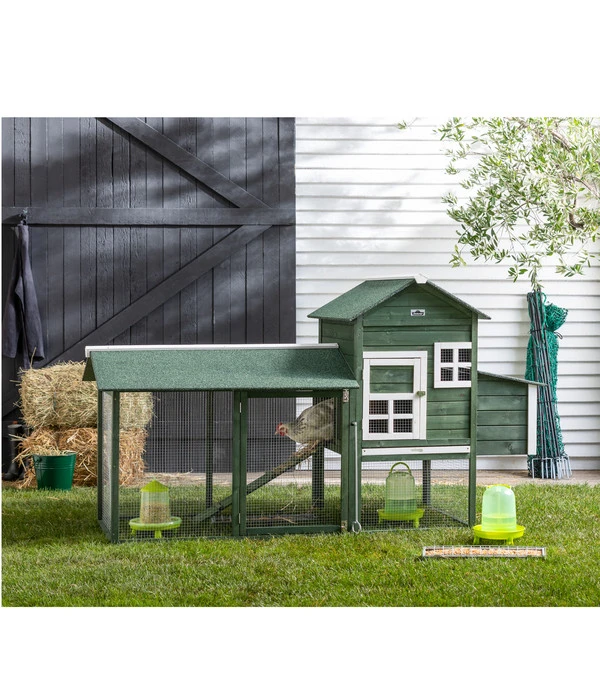 Komfortabler Hühnerstall mit überdachtem Bereich und Legenest