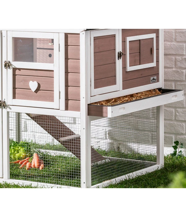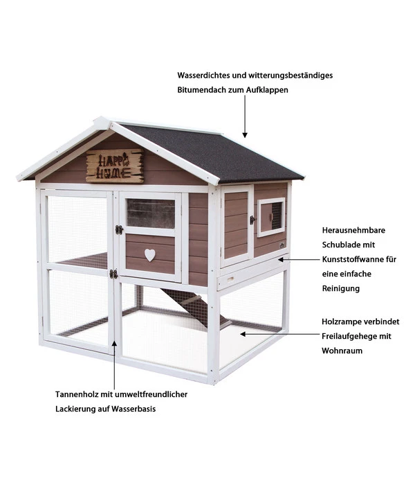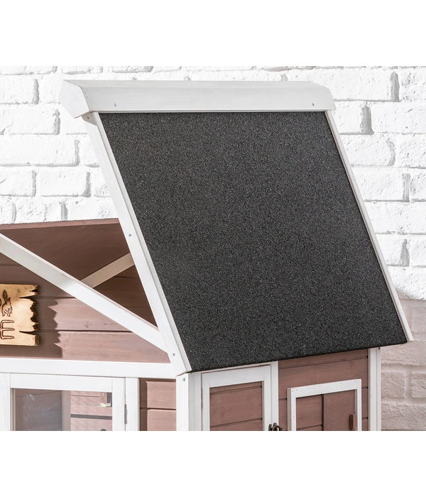 Kaninchenstall auf 2 Etagen, inkl. Freigehege & Rückzugsmöglichkeit, aus Tannenholz, wasserdichtes, aufklappbares Bitumen-Dach