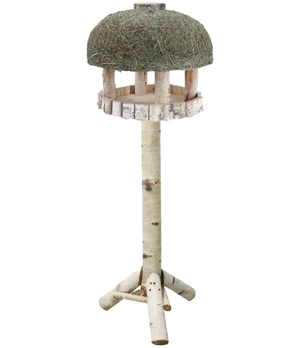 Das natürliche Heudach macht das Futterhaus Amberg aus dem Hause Dehner Natura zu etwas ganz Besonderem. Ergänzt wird dieses hübsche und nachhaltige Design für Ihren Garten durch einen ansprechenden Birkenholz-Ständer. Sein robuster Dreifuß hält darüber hinaus Wind und Wetter optimal stand. Bieten Sie den heimischen Wildvögeln 365 Tage im Jahr ein leckeres Buffet und genießen Sie diese schönen Augenblicke, indem Sie das Dehner Natura Futterhaus Amberg mit Heudach jetzt für Ihren Outdoorbereich bestellen!
