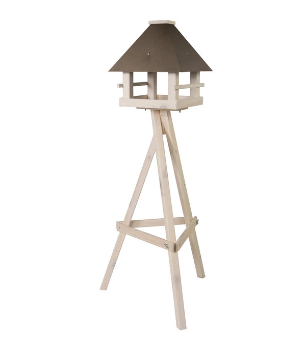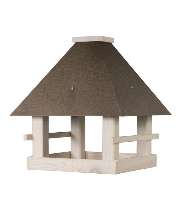 Ob die Amseln, Meisen und Rotkelchen in Ihrem Garten einen Blick für die Architektur Ihres neuen Vogelhauses haben, ist unsicher; sicher aber werden die Vöglein es begrüßen, dass jetzt ein Imbiss mit nahrhaften Speisen gleich in der Nähe aufgemacht hat. Und sich dort genüsslich die kleinen Bäuchlein füllen und Sie jeden Tag mit fröhlichem Gezwitscher und unterhaltsamen Flugmanövern unterhalten werden. Aber Sie werden es sehr wohl zu schätzen wissen, wie hübsch sich das Dehner Natura Futterhaus Matterhorn in die natürliche Umgebung Ihres Gartens einfügt. Sowohl das Häuschen wie auch der stabile Dreibeinständer sind aus massivem Kiefernholz, das bereits mit einer wasserbasierten Holzschutzfarbe behandelt und so vor Witterungseinflüssen geschützt wurde. Wasserbasiert heißt in diesem Fall, dass Sie sicher sein können, dass die Farbe ungiftig und tierfreundlich ist. Das Dach besteht aus Metallpulver und hält das Innere des Hauses und damit auch das Futter trocken. Decken Sie gleich Ihren gefiederten Freunden den Tisch – mit dem Dehner Natura Futterhaus Matterhorn!