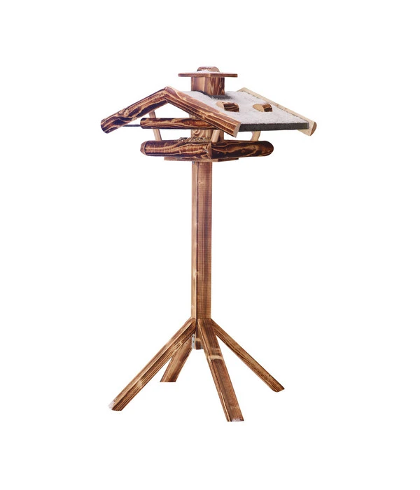 Das Dehner Natura Futterhaus Wendelstein inkl. Ständer geflammt ist ein echter Hingucker für jeden Garten. Das rustikale Vogelrestaurant kommt aus Niederbayern, wo es in Handarbeit hergestellt wurde. Dank seiner massiven Verarbeitung und dem geflammten Holz ist das Vogelfutterhaus sehr beständig gegenüber Wettereinflüssen wie Regen, Schnee und Sonne. So haben Sie besonders lange Freude an Ihrem neuen Vogelhaus. Das Dehner Natura Futterhaus + Ständer Wendelstein geflammt verfügt über vier Öffnungen in alle vier Himmesrichtungen. Auf diese Weise können Ihre gefieferten Gäste das Vogelhaus Holz bequem von allen Seiten anfliegen. Über die praktische Futteröffnung im Dach ist das Nachfüllen von Vogelfutter besonders einfach und Sie können jederzeit für Nachschub sorgen. Nicht, dass die Vögel in Ihrem Garten hungrig wieder fortfliegen müssen! Mit dem Dehner Natura Futterhaus Wendelstein inkl. Ständer geflammt stellen Sie nicht nur eine dekorative, sondern auch eine sichere Futterstelle bereit. Denn mit im Lieferumfang enthalten ist ein stabiler Ständer aus Vierkanthölzern. Er sorgt für einen festen Stand des Vogelhauses und dafür, dass die gefiederten Esser sicher vor Fressfeiden in aller Ruhe futtern können. Der Ständer vom Dehner Natura Futterhaus Wendelstein geflammt punktet, genau wie das Vogelfutterhaus, mit seiner hochwertigen und massiven Verarbeitung und wurde ebenfalls geflammt, um das Holz widerstandsfähig gegen Wettereinflüsse zu machen. Mithilfe der beiliegenden Schraube befestigen Sie das Futterhaus einfach und ohne großen Aufwand darauf und bieten den Vögeln in Ihrem Garten so einen sicheren Rast- und Futterplatz.