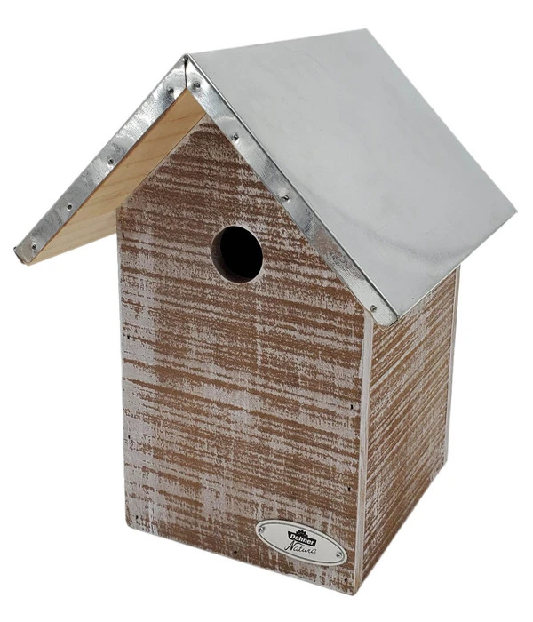 Der Dehner Natura Nistkasten Cologne besteht aus robustem Kiefernholz bzw. Blech und hält neben einem kleinen Einflugloch eine Aufhängevorrichtung und eine Reinigungsklappe auf der Rückseite für Sie bereit. So schützt der Nistkasten vor Wettereinflüssen sowie Nesträubern, ermöglicht eine leichte, gründliche Säuberung und ist sehr leicht zu montieren. Außerdem sieht er durch sein klassisches, von Used-Effekten geprägtes Erscheinungsbild sehr schön aus – sie erhalten demnach ebenfalls ein dekoratives Element für den Außenbereich, das Ihr Arrangement hervorragend erweitert und schnell zum Hingucker wird. Entscheiden Sie sich jetzt für den Nistkasten Cologne aus dem Sortiment von Dehner Natura und unterstützen Sie die Wildvögel im Garten beim Brüten!