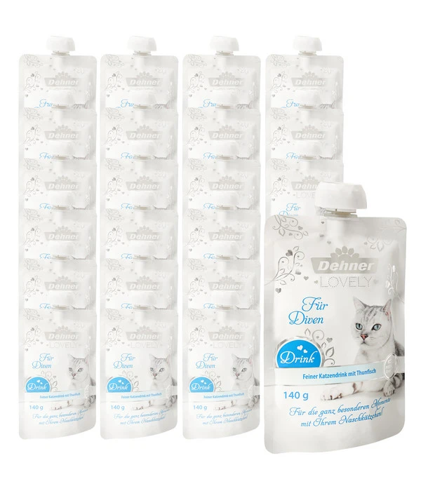 Mal ist sie ein liebenswertes Schätzchen, total verschmust und kuschelig; im nächsten Moment gebärdet sie sich, als hätte sie die Nähe zu Ihnen noch nie gebraucht geschweige denn gemocht und fährt ihre Krallen aus. Und trotzdem – oder auch gerade wegen dieses unberechenbaren Wesens – lieben Sie Ihre Katze sehr. Und möchten natürlich, dass es ihr auch in vielen Jahren noch so gut geht wie heute. Dann haben wir einen wichtigen Rat: Achten Sie auf eine ausreichende Flüssigkeitsaufnahme! In freier Natur nehmen Katzen die benötigte Flüssigkeitsmenge über das Blut ihrer Beutetiere auf – das reicht in der Regel. Als unsere Haustiere trinken sie aber oftmals zu wenig, da sie als ehemalige Wüstenbewohner kein Durstgefühl verspüren, anders als zum Beispiel Hunde. Die Folge können langfristig Erkrankungen der Harnwege und der Nieren sein. Mit dem Dehner Premium Lovely Katzensnack Drink Für Diven haben Sie aber eine Belohnung gefunden, die Schlückchen für Schlückchen so lecker schmeckt, dass Ihre Samtpfote gerne davon trinken wird. Warten Sie also nicht, sondern geben Sie Ihrem Schätzchen ab morgen täglich den Dehner Premium Lovely Katzensnack Drink Für Diven!