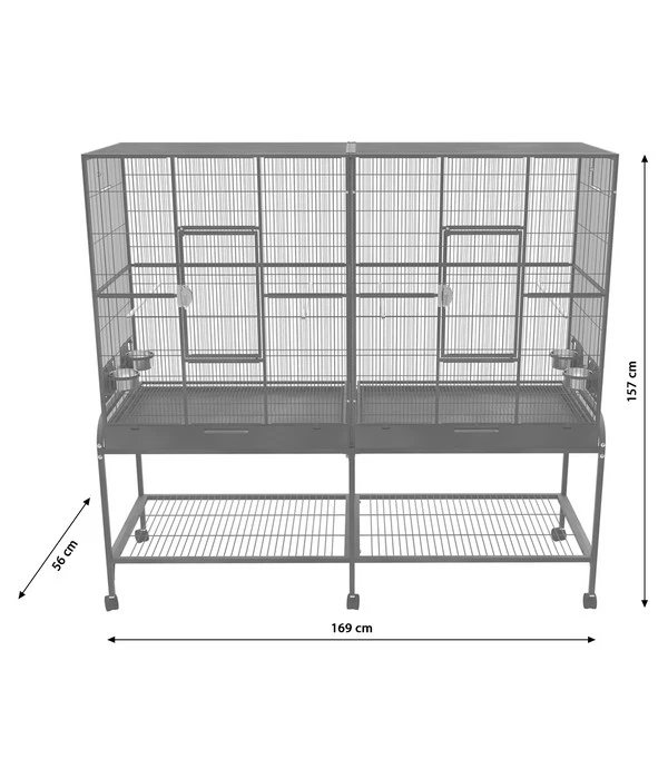 Voliere für Ziervögel, mit Rollwagen und Kotgittern, Gesamtgröße 169x56x157 cm