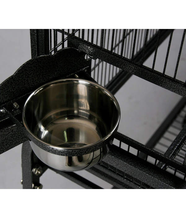 Obwohl die Dehner Voliere Aurelio mit einer Gesamtgröße von 169x157x56 cm ein recht massiver Vogelkäfig ist, lässt er sich sehr bequem handeln. Das liegt daran, dass er auf einem sechsrädrigen Rollwagen steht, der es Ihnen ermöglicht, das Vogelheim von einem Zimmer ins andere oder auch mal zum Frischluftschnappen in den Garten zu schieben. Außerdem bietet der Rollwagen mit einem Ablagefach zusätzlichen Stauraum, damit Sie Vogelfutter oder Reinigungsutensilien immer griffbereit haben. Der Vogelkäfig und das rollbare Untergestell können voneinander getrennt montiert werden. Mit Gitterabständen von 11,3 mm sowie 1,8 mm dicken vertikalen und 3 mm starken vertikalen Gitterstäben ist die Dehner Voliere Aurelio bestens für kleine Ziervögel wie Nymphensittiche geeignet. Sie müssen Sie nur noch mit leckerem Vogelfutter und Spielzeug einrichten und Ihre gefiederten Freunde hineinsetzen.