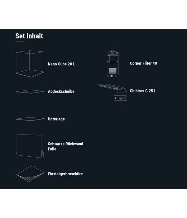 Der riesige Vorteil ist, dass Sie alles aus einer Hand erhalten: das Nano-Designaquarium Set wird inklusive Beleuchtung, Filter und Einsteigerbroschüre geliefert. Die gesamte Technik ist also bereits mit dabei und Sie müssen nicht erst mühsam die verschiedenen Zubehörteile zusammensuchen. Auch der Energieverbrauch kann sich sehen lassen: das Nano-Designaquarium hat lediglich einen Energieverbrauch von rund 0,08 Euro pro Tag. Es passt mit seiner kompakten Größe hervorragend auch in kleine Wohnungen und belebt jeden Raum. Wenn Sie sich ein wunderschönes Einsteiger-Aquarium inklusive Zubehör wünschen, dann legen Sie am besten jetzt das DENNERLE Mini-Aquarium Set Nano Cube Basic Version 2022 in Ihren Warenkorb!