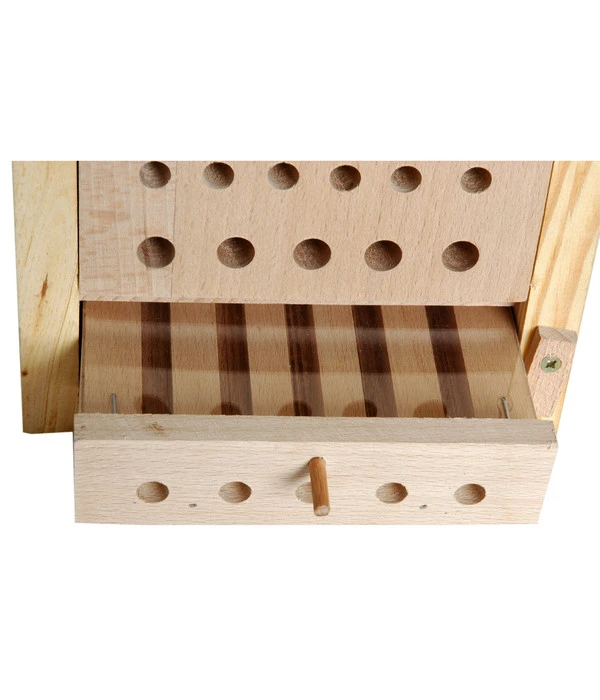 Viele Bienen-Sympathisanten wissen gar nicht, wie die Entwicklung einer Wildbiene im Einzelnen vonstattengeht. Das Wildbienen-Weibchen legt nämlich ihre befruchteten Eier einzeln in kleine Hohlräume – in Ihrem Garten bald in eines der Appartements im dobar Insektenhotel – zusammen mit Pollen und etwas Nektar. Diese Nahrung reicht dann für die gesamte Entwicklungszeit über das Larven- und Puppen-Stadium bis zur erwachsenen Biene. Das Beste: Diesen Prozess können Sie bald live verfolgen, denn das dobar Insektenhotel hat eine Beobachtungsschublade, die Sie ab und zu herausziehen können, um einen Blick ins Innere zu werfen. Auch für Kinder ein besonderes Naturerlebnis! Da die Schublade mit einer Plexiglasscheibe geschützt ist, müssen Sie keine Sorge haben, den Entwicklungsprozess der Bienen zu stören.