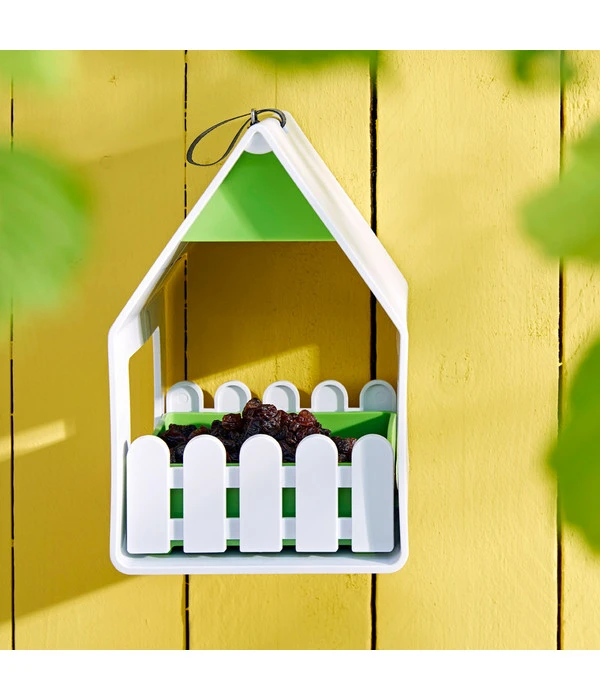 Suchen Sie ein ungewöhnliches Vogelhaus, das sich von der Masse abhebt und einfach anders ist? Dann ist das von Vogelexperten entwickelte Emsa Landhaus Futterhaus ideal für Sie. Der quietschgrüne Hingucker mit weißer Brüstung wird die Vögel in Ihrem Garten sicher begeistern. Mit seiner kompakten Größe eignet sich das putzige Vogelhaus am besten für Kleinsingvögel wie Blaumeisen oder Haussperlinge. Mit diesem Futterhaus im modernen Landhausstil bieten Sie Ihren gefiederten Freunden das ganze Jahr über eine Anlaufstelle in Ihrem Garten oder auf dem Balkon. Im Winter wird das Vogelhaus mit leckerem Streufutter oder Meisenknödeln zum gemütlichen trockenen Futterplatz, der bequem von vier verschiedenen Seiten angeflogen werden kann. Und während der Sommermonate funktionieren Sie das Häuschen mit Hilfe des verschließbaren Wasserablaufs einfach zur tollen Bademöglichkeit oder Vogeltränke um. Auch der Standort für das Futterhaus lässt sich beliebig wählen. Hängen Sie es an der integrierten Dachschlaufe frei auf oder befestigen Sie es über das Hakenloch im Giebel an einer Wand. In unserem Onlineshop erhalten Sie außerdem eine zusätzliche Stab- und eine Geländerhalterung für noch mehr Freiheit bei der Standortwahl. Damit Sie besonders lange Freude daran haben, besteht das auffällige Vogelhäuschen aus strapazierfähigem Kunststoff. Damit ist es witterungs- und UV-beständig sowie frostfest. Durch die entnehmbare Futterschale ist auch die Reinigung kein Problem. Ihre Nachbarn werden Sie um dieses ungewöhnliche Futterhäuschen und die vielen gefiederten Besucher in Ihrem Garten beneiden!