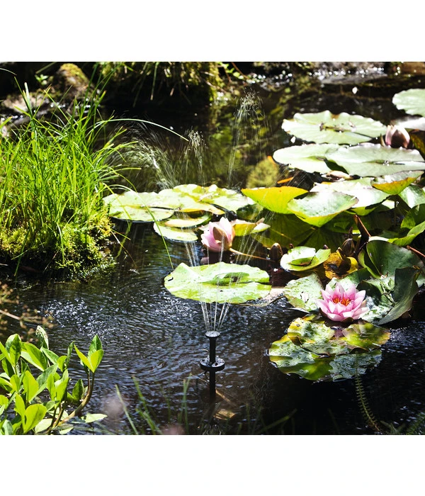 Ein ganz besonderes Element der Gartengestaltung: Das solarbetriebene System Palermo von Esotec verursacht keine Stromkosten, ist schnell aufgebaut und beeindruckt den Betrachter. Die vier Wasserdüsen bringen unterschiedliche Fontänen hervor, welche im Dunklen von einem LED-Ring beleuchtet werden. Die maximale Förderhöhe des Wassers beträgt 90 cm.