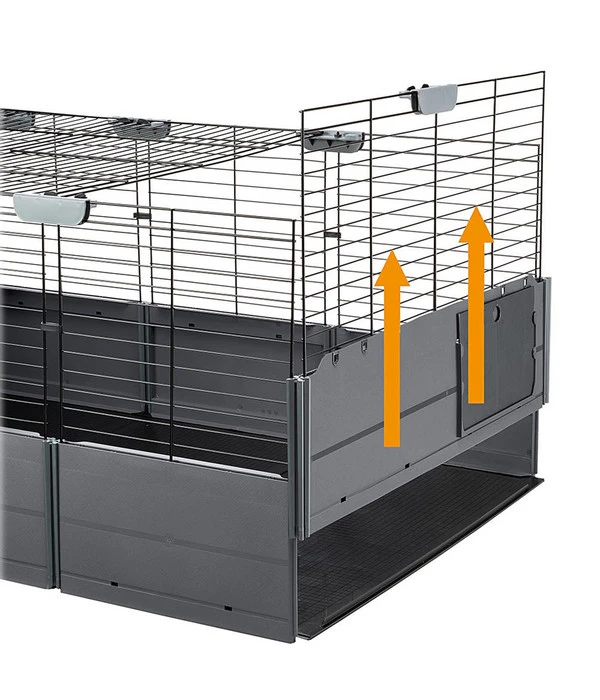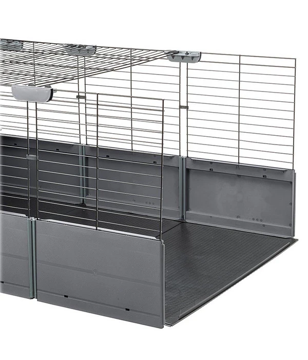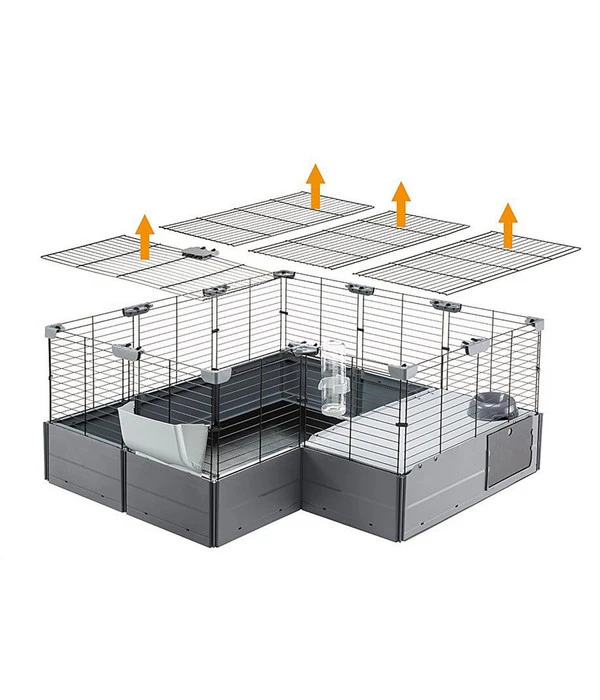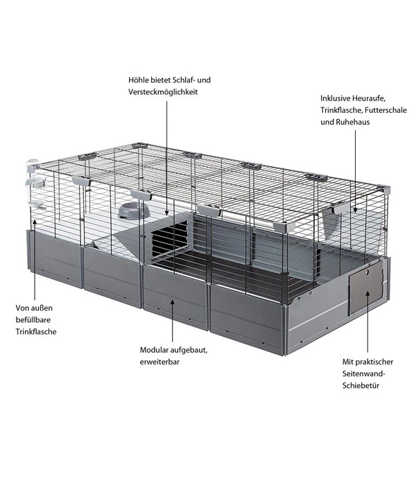 Im Indoor-Freigehege für Ihre Nager fehlt noch ein behaglicher Ort, in den sich Ihre Lieblinge zurückziehen oder wo sie nachts schlafen können? Dann statten Sie es doch einfach mit dem Nagerheim Multipla Maxi aus dem Hause ferplast aus. Es ist ein ganz besonderer Käfig, denn man kann ihn individuell in unterschiedlichen Formen zusammenbauen. So haben Sie immer die Möglichkeit, die Nagerbehausung perfekt an Ihre Wünsche und Vorstellungen anzupassen. Hinzu kommen die Erweiterungen Base Extension und Roof Extension, mit denen sich das Nagerheim oben und unten vergrößern lässt. Diese Abwechslung wird auch Ihren Kleintieren gefallen, denn so gibt es immer wieder etwas Neues zu erkunden.
