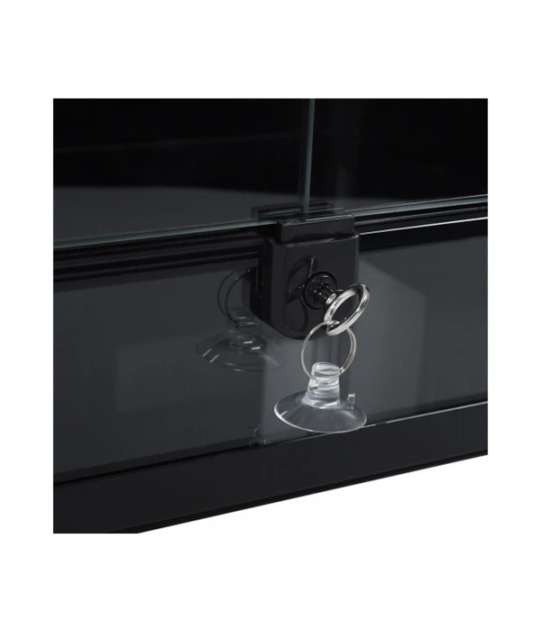 So ist beim Hobby® Selbstbau Glasterrarium Terra Fix & Easy 60 auch die Reinigung besonders einfach, denn das Terrarium ist dafür an der Vorderseite mit Schwingtüren ausgestattet; möchten Sie es gründlich reinigen oder neu dekorieren, können Sie das Oberteil sogar komplett abnehmen. Eine Lochbohrung mit verschließbarer Kabelführung ermöglicht es Ihnen außerdem, seitlich z. B. Schläuche einer Beregnungsanlage, Kabel einer Heizmatte oder Fühler eines Controllers zu verlegen.