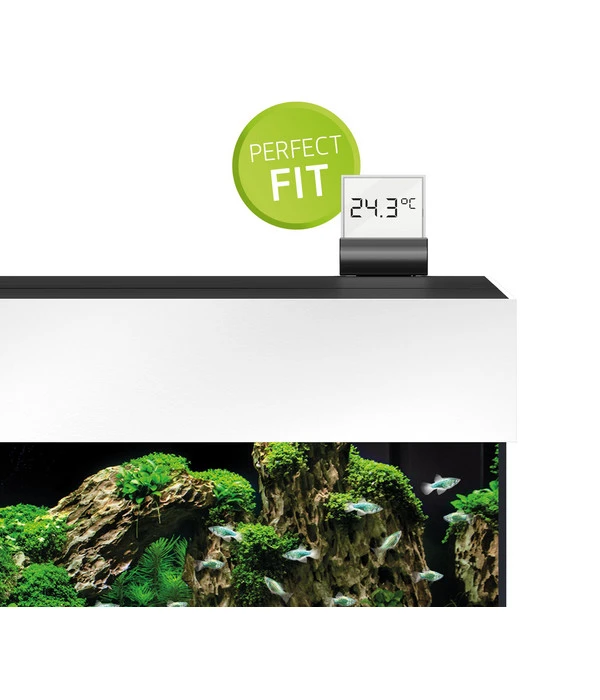 Wenn Sie ein tolles Aquarium mit schönen Fischen in Ihrer Wohnung haben und Sie sich für die Meerestiere nur das Beste wünschen, dann ist das Digital Thermometer 3.0 genau das richtige Produkt für Sie. Es passt perfekt für JUWEL® Aquarien sowie alle Aquarien anderer Hersteller und garantiert Ihnen die volle Kontrolle. Dank des großen und klaren Displays lässt sich die Wassertemperatur jederzeit problemlos ablesen.