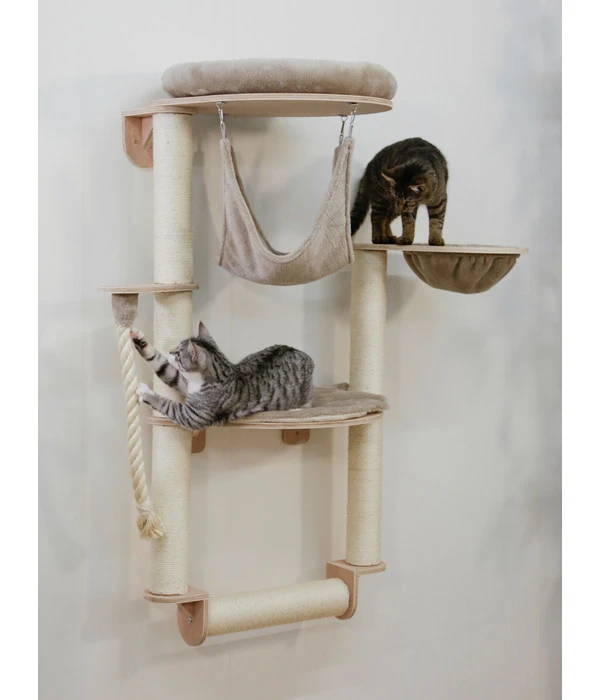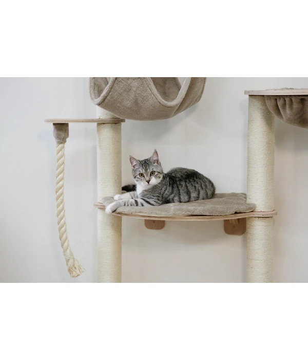 Sie wollen Ihrer Katze in Ihrem Heim einen Ort bieten, an dem sie sich ausruhen, aber auch austoben kann? Dann ist der Wandkratzbaum Dolomit Grappa Pro von KERBL wie für Sie gemacht. Er hält für Ihren Liebling mehrere Etagen als Liegeflächen oder zum Klettern und Springen bereit, was ihm viel Abwechslung garantiert. Hinzu kommt ein herabhängendes Seil, mit dem Ihre Samtpfote sicher voller Freude spielt. Auch an die Krallenpflege wurde bei diesen Artikel gedacht. Ihre Katze kann an der vertikalen Sisalsäule die Krallen wetzen, wodurch sie ihrem Instinkt optimal nachgeht.