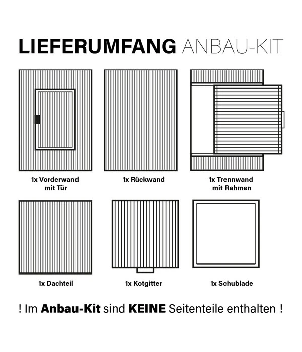 Sie besitzen die Voliere Arkansas I oder II (Modell bis Mai 2021) und wollen diese erweitern? Das gelingt Ihnen mit dem Vogelvoliere Anbausatz für Arkansas von Montana kinderleicht! Das Modul bietet Ihnen mit 1×1 Meter mehr Platz für Ihre Papageien. Ganz gleich, ob für Grassittiche, Sperlingspapageien oder Schwarzohrpapageien, durch das Erweiterungsmodul lässt sich Ihre Voliere beliebig oft vergrößern. Das Set beinhaltet unter anderem eine Trennwand, mit der die einzelnen Abschnitte des Käfigs separiert werden können. Außerdem vereinfachen eine Schublade und das Kotgitter die Reinigung der Vorrichtung. Die durchdachte Ausstattung sowie die hohe Qualität der Montana-Produkte sorgen für mehr Komfort und Freude bei der Haltung von Vögeln, wovon auch Sie mit diesem Erweiterungsmodul profitieren.