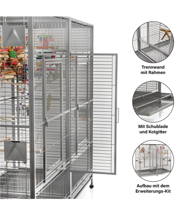 Das Metall des Vogelvoliere-Anbausatzes besticht durch seine schwermetallfreie und damit ungiftige AVILON® Pulverbeschichtung. So garantieren Sie Ihren Vögeln eine sichere und tierfreundliche Haltung. Für einen schnellen Einsatz des Moduls und mehr Abwechslung im Vogelalltag empfiehlt es sich, die Käfigeinrichtung und das Vogelspielzeug gleich mitzubestellen. Entscheiden Sie sich für den Montana Vogelvoliere Anbausatz für Arkansas und überzeugen Sie sich selbst von seinen vielen Vorteilen!
