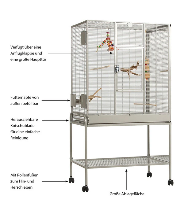 Sie sind begeisterter Vogelfreund und möchten Ihren gefiederten Lieblingen etwas Gutes tun? Dann verschaffen Sie den Tieren mit dem Anbausatz für die Madeira Double Voliere noch mehr Platz. Egal, ob Finken, Sittiche oder kleine Papageienarten – dank des Erweiterungsmoduls fühlen sich alle diese Vogelarten noch wohler in ihrem Käfig. Der Anbausatz lässt Sie die Voliere um eine komplette Hälfte vergrößern und beinhaltet eine Trennwand, eine Schublade und ein praktisches Kotgitter. Der Anbaukit aus Metall wurde natürlich auch mit der patentierten AVILON® Pulverbeschichtung überzogen, welche speziell für die Vogel- & Nagerhaltung ausgelegt ist.