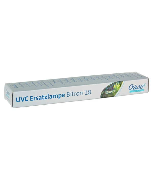 Die Oase UVC Ersatzlampe mit einer Leistung von 18 W ist eine hochwertige Ersatzlampe für viele UVC Geräte mit 18 Watt. Vorklärgerät in Ihrem Gartenteich, passend für die Vorklärgeräte Bitron C 18 W und FiltoMatic CWS 6000 und auch für viele andere UVC-Geräte mit 18 W. Die Oase UVC Ersatzlampe mit 18 W zeichnet sich durch eine hochwertige Qualität aus und hält über 8.000 Betriebsstunden lang.