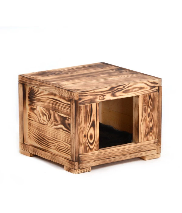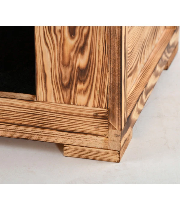Die Silvio Katzenhöhle Amadeus ist aus geflammtem Vollholz gefertigt, was Ihr eine unvergleichliche und sehr besondere Oberflächen-Optik verleiht. Das kleine Kuschelreich für Ihren Vierbeiner ist 40 cm x 30 cm x 36 cm groß und hat einen großzügigen Eingang von 18 x 18 cm.