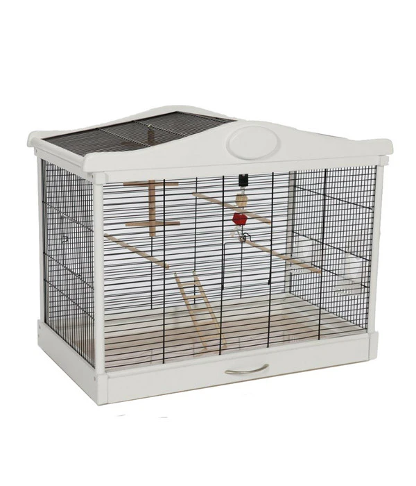 Vogelkäfig, mit herausziehbarer Reinungsschublade, zwei Öffnungen zum Hereingreifen und Zubehör