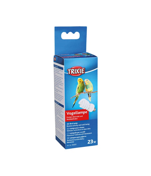 Diese Trixie Vogellampe ist eine UV-Lampe, die speziell für Vögel entwickelt wurde. Durch die Abgabe von UVA- und geringen UVB-Strahlung simuliert die Vogellampe lebenswichtiges Sonnenlicht und sorgt für beste, natürliche Lichtverhältnisse und Farbwiedergabe durch die Daylight Farbtemperatur im Vogelkäfig. Die Lampe für Vögel von Trixie fördert die Aktivität, das Wohlbefinden und verbessert zudem das Fressverhalten. Auch begünstigt die Vogellampe, dass Ziervögel ihr volles Sehvermögen nutzen können und ist für die Vogelaugen flimmerfrei. Die Vogellampe ist ein tolles Käfigzubehör und eignet sich hervorragend für eine optimale Käfig-Beleuchtung. Die Trixie Vogellampe ist mit einer Standard E27-Fassung ausgestattet und hat eine Leistung von 23 Watt.