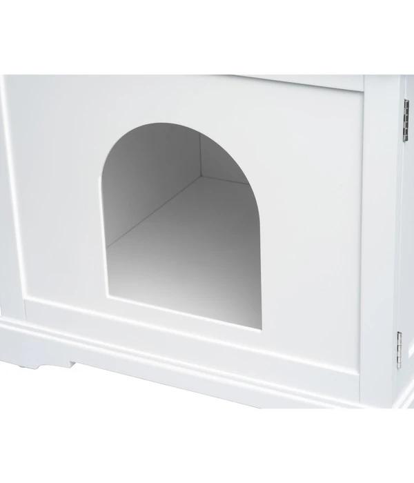 „Du hast ja eine neue Kommode! Die sieht aber schick aus!“ Wenn Sie in Zukunft solche Kommentare hören, kann nur der UPP Katzenschrank XXL gemeint sein! Im angesagten Landhaus-Look mit stilechten Details designt und aus FSC®-zertifiziertem Holz gefertigt, ist der bis 36 kg belastbare Schrank tatsächlich ein kleines Schmuckstück. Und wer nicht irgendwann Ihre Katze an der Seite des Schrankes verschwinden sieht, wird niemals darauf kommen, dass sich hinter der hübschen Tür das stille Örtchen Ihrer Katze verbirgt. Und hinter der durch eine Trennwand abgetrennten anderen Tür können Sie Katzenstreu, Futterdosen und Co unterbringen. Legen Sie Ihrer Samtpfote noch eine kuschelige Decke auf die obere Ablagefläche, ist ihr Glück perfekt. Genießen Sie bald Seite an Seite mit Ihrer Katze gemütlich den Abend, ohne dass das Sofa immer voller Katzenhaare ist – mit dem UPP Katzenschrank XXL!