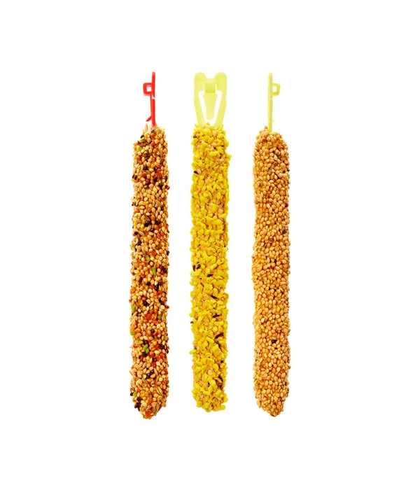 Mit dem knusprigen Ergänzungsfutter Kräcker für Vögel hat ihr kleiner Piepmatz viel zu knabbern. Das Vogelfutter gibt es im Mix mit drei verschiedenen Geschmacksrichtungen: Honig, Ei und Frucht. Die Kräcker sind reich an für Vögel wichtigen Vitaminen. Wenn das Vogelfutter ein wenig abgeknabbert wurde, kann Ihr Wellensittich an dem Knabberholz im Inneren nagen.
